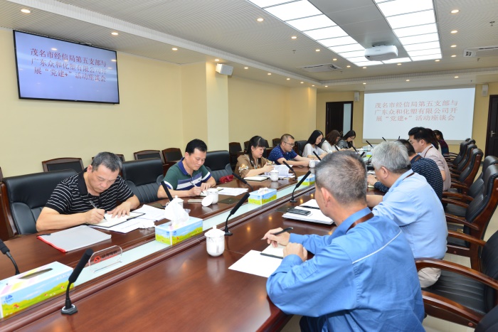 4月13日,公司机关党支部联合茂名市经信局第五党支部开展了“党建+”活动座谈会。市经信局局长黎忠球、第五党支部书记,公司副总经理张海涛以及双方党支部党员参加座谈会。