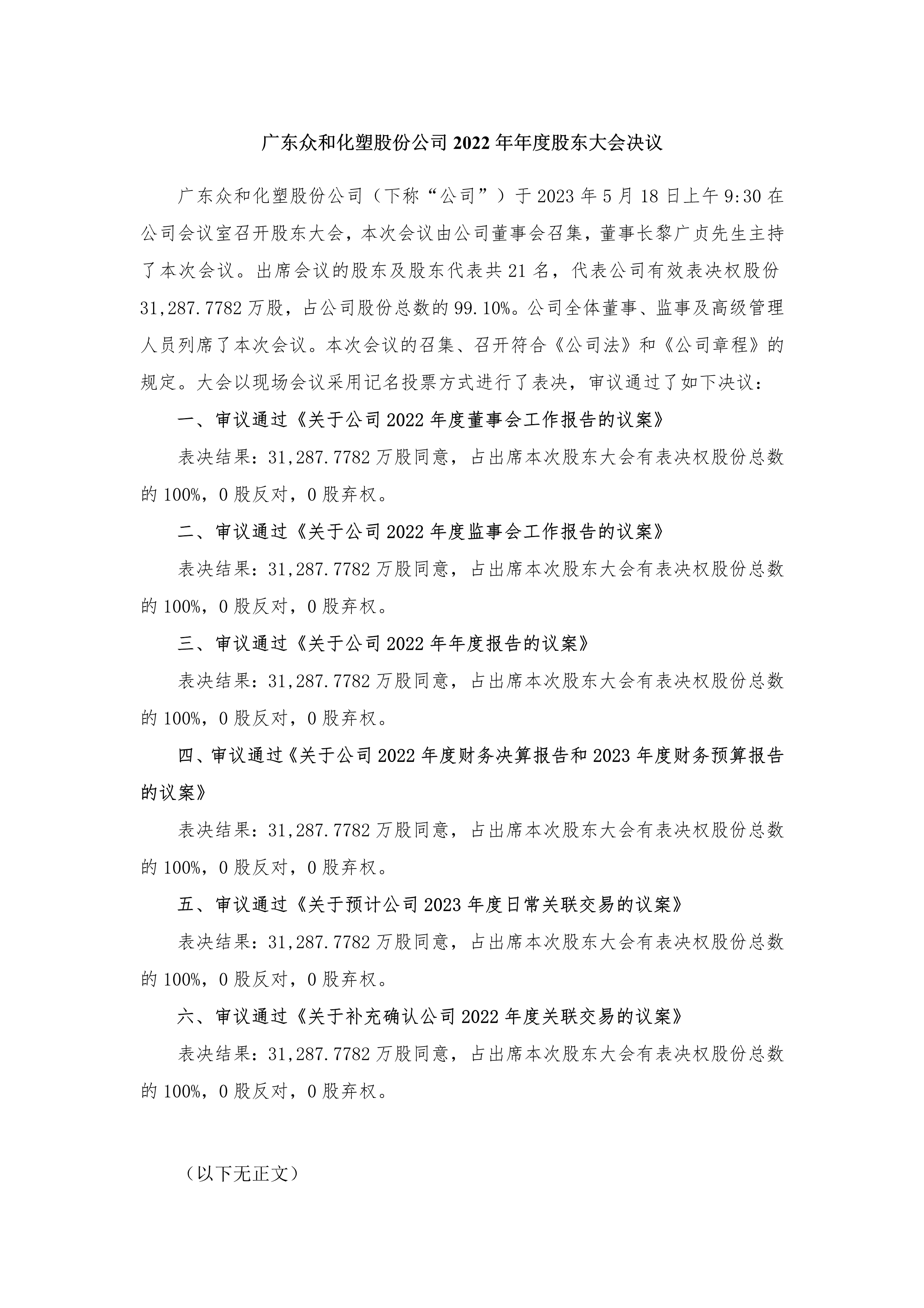 FUN乐天使2022年年度股东大会决议