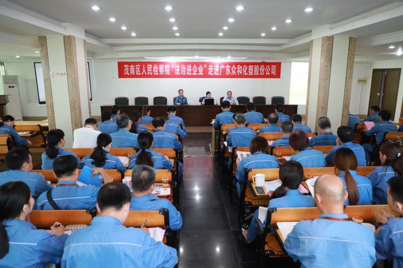 为公司职工普及法律知识,提高公司及职工依法诚信经营,维护自身合法权益的意识和能力,7月19日上午,茂南区检察院到公司开展了“法制进企业”现场法律宣传活动。公司副总经理兼总会计师辜嘉杰,茂南区检察院党组成员、副检察长阮志强及十多名检察官参加本次活动。