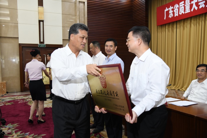 9月28日,广东省质量大会暨国家标准化综合改革试点建设工作会议在广州召开。会议通报表彰了2017年广东省政府质量奖获奖企业,马兴瑞省长为获奖企业颁奖。公司董事长、总经理黎广贞代表公司上台领奖。据悉,广东省政府质量奖是省政府设立的广东省最高质量奖项,2017年全省有10家企业荣获该奖项,众和公司是粤西首家获此殊荣的企业。