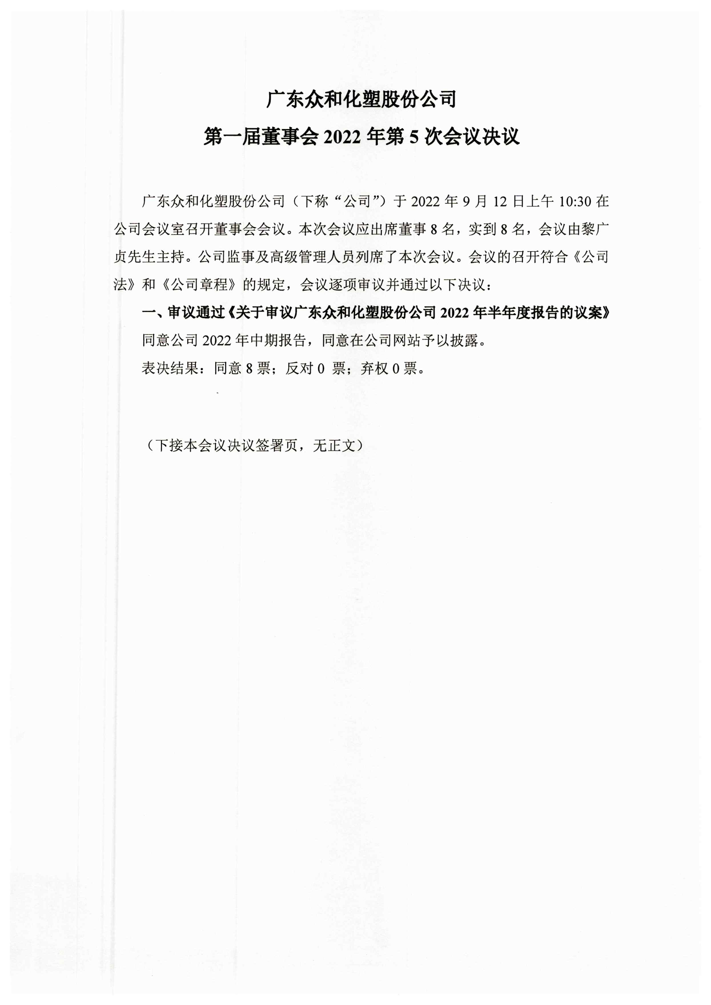 第一届董事会2022年第5次会议决议