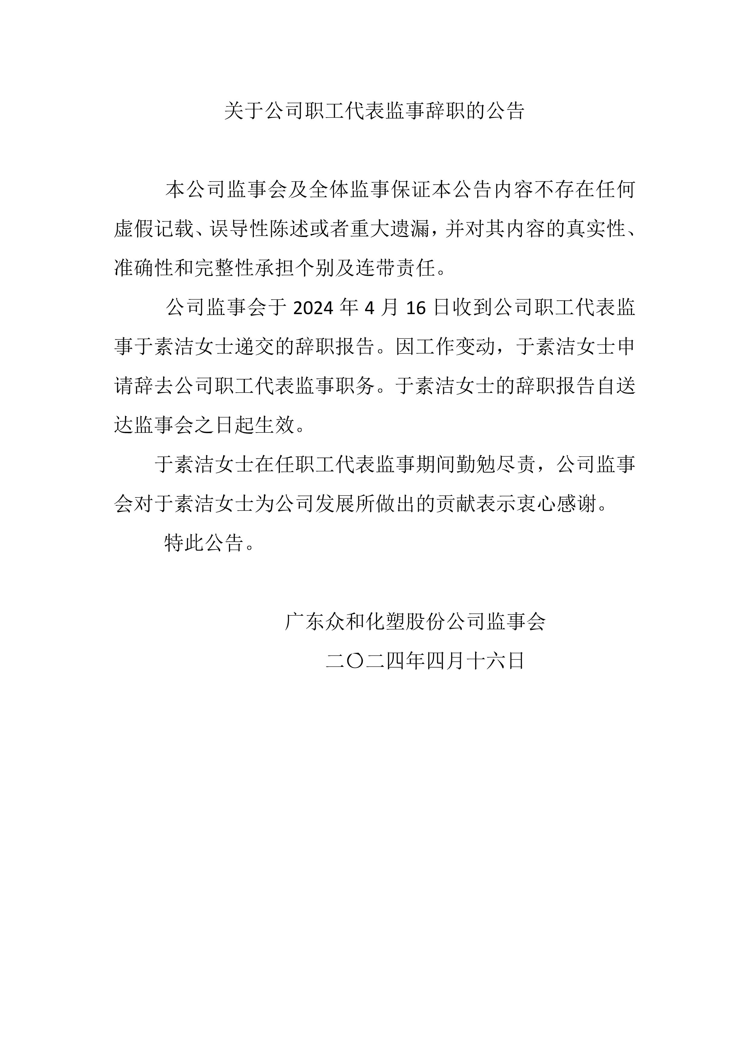 关于公司职工代表监事辞职的公告