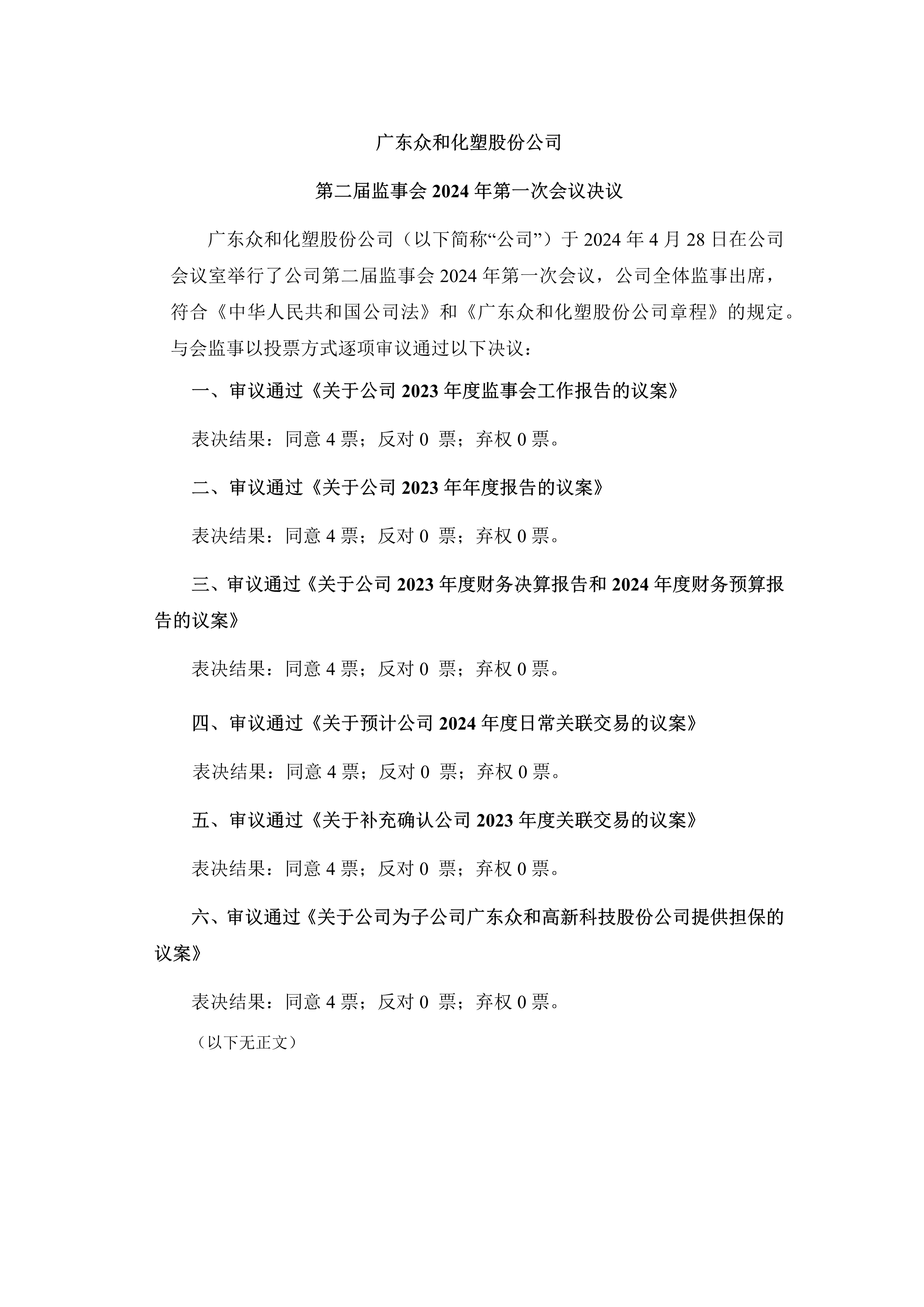 FUN乐天使 第二届监事会2024年第一次会议决议